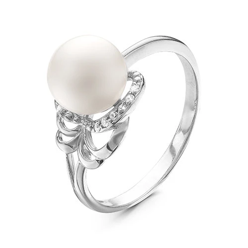 Кольцо из белого золота с белой речной жемчужиной 8,5-9 мм, (7593)