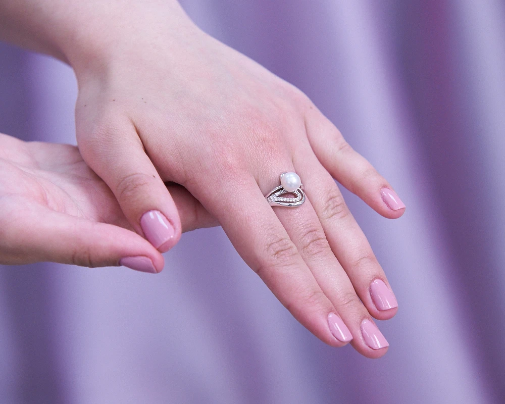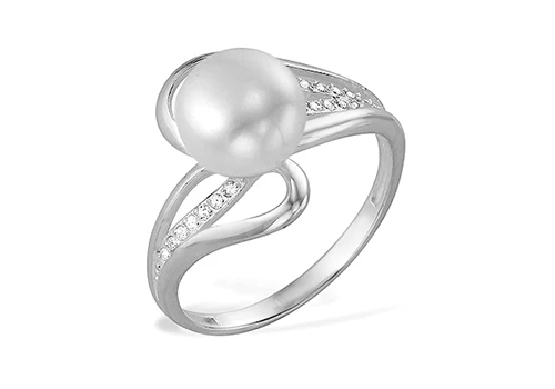 Кольцо из белого золота с белой речной жемчужиной 7,5-8 мм, (2230)