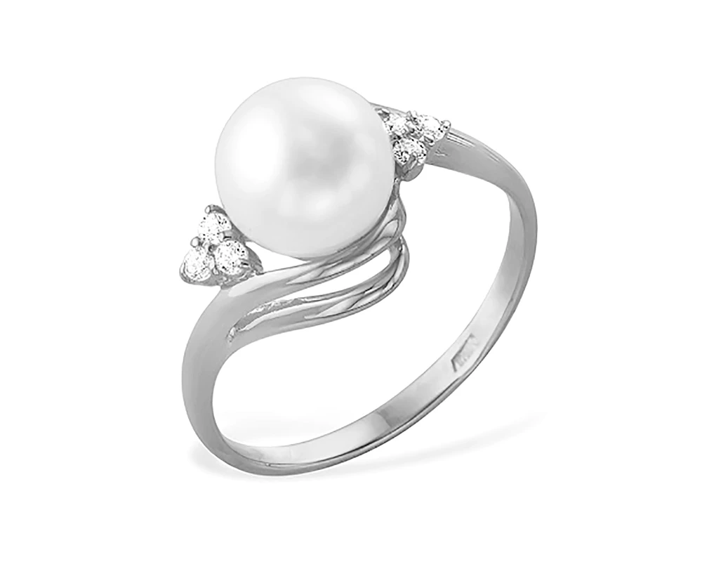 Кольцо из белого золота с белой речной жемчужиной 7,5-8 мм, (5961)