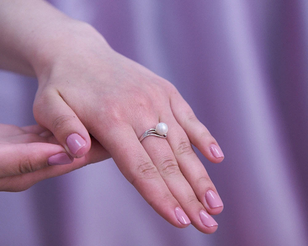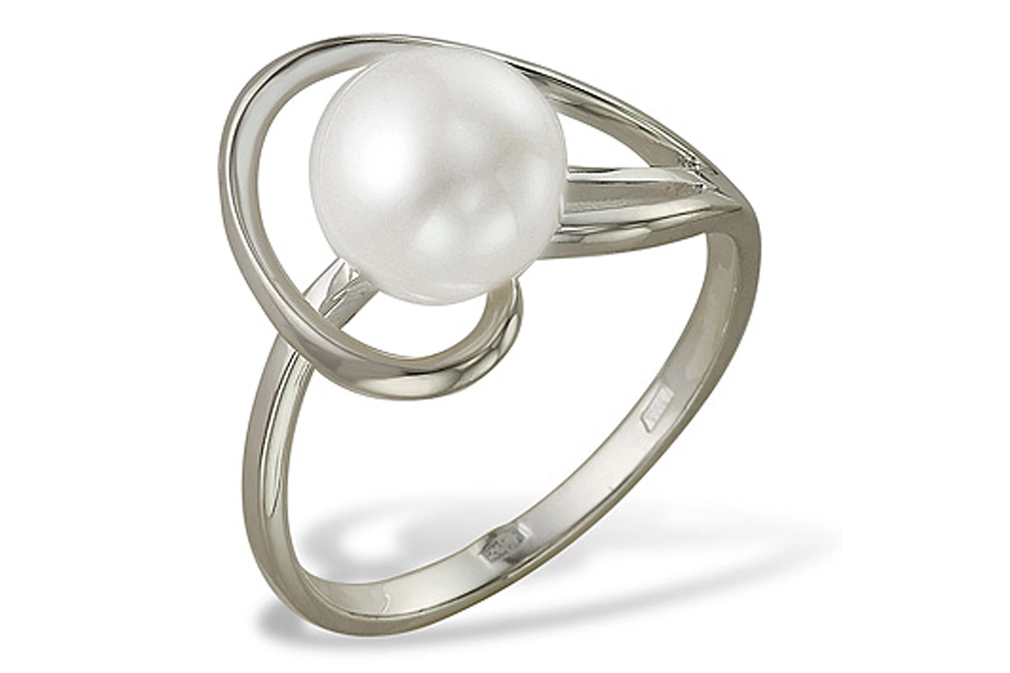 Кольцо из белого золота с белой речной жемчужиной 7,5-8 мм, (5969)