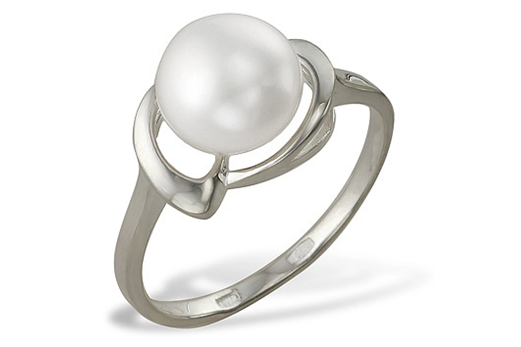 Кольцо из белого золота с белой речной жемчужиной 7-7,5 мм, (1202)