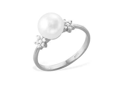 Кольцо из белого золота с белой речной жемчужиной 7-7,5 мм, (5953)