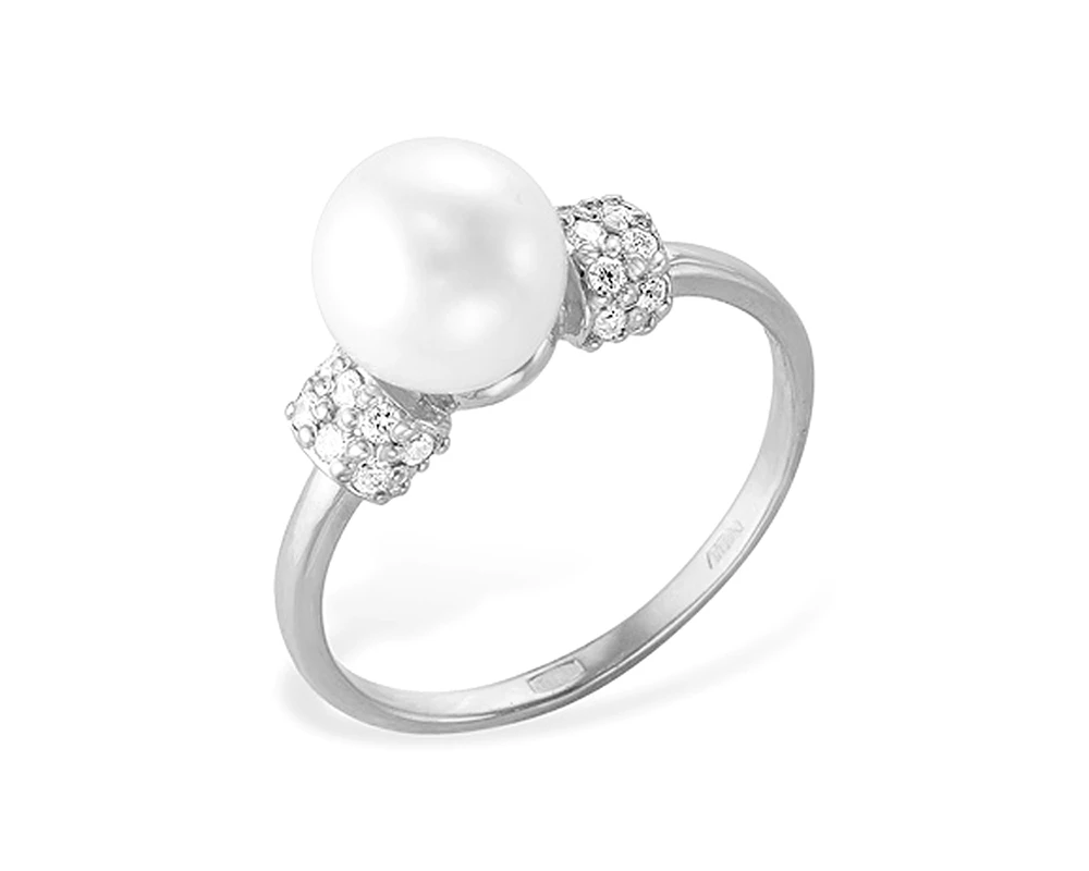 Кольцо из белого золота с белой речной жемчужиной 7-7,5 мм, (5955)
