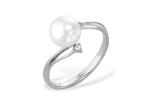 Кольцо из белого золота с белой речной жемчужиной 7-7,5 мм, (5957)