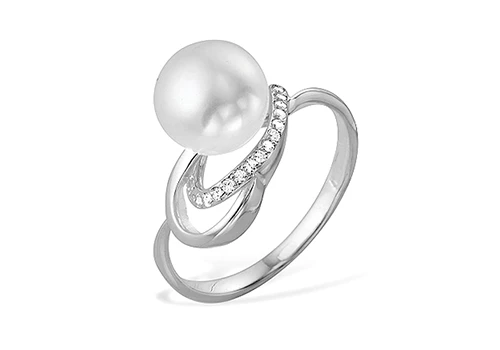 Кольцо из белого золота с белой речной жемчужиной 8,5-9 мм, (1971)