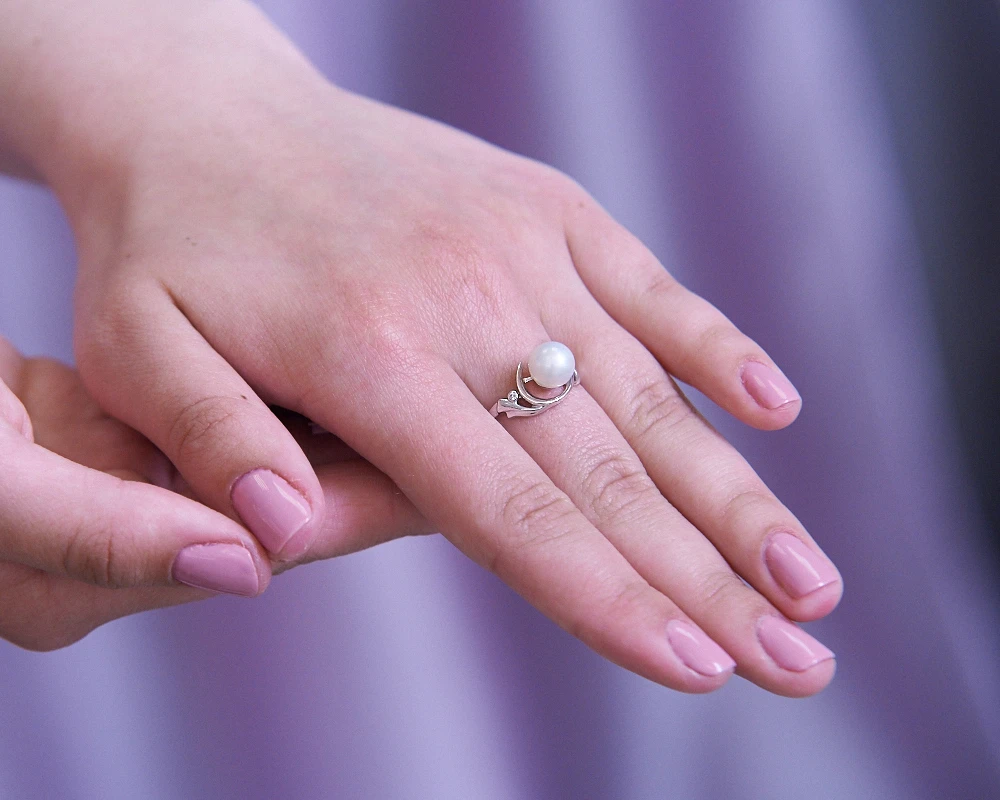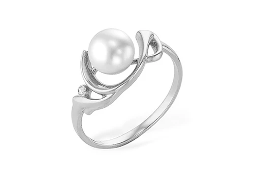Кольцо из белого золота с белой речной жемчужиной 8-8,5 мм, (5967)
