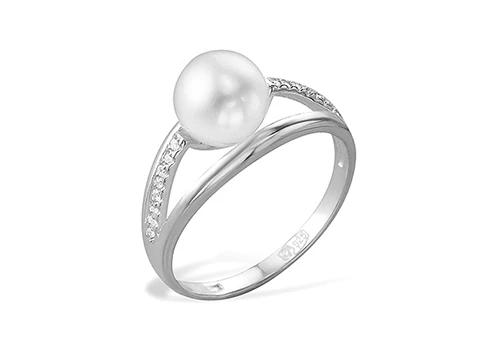 Кольцо из белого золота с белой речной жемчужиной 9,5-10 мм, (1424)