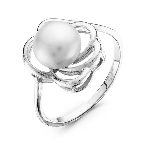 Кольцо из белого золота с белой речной жемчужиной 7-7,5 мм, (7360)
