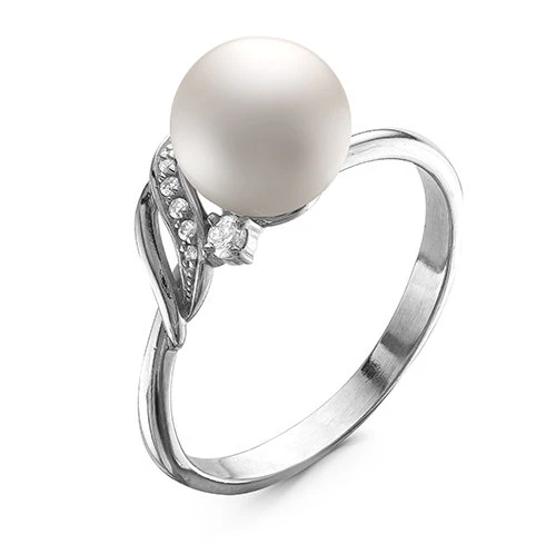 Кольцо из белого золота с белой речной жемчужиной 8,5-9 мм, (7362)