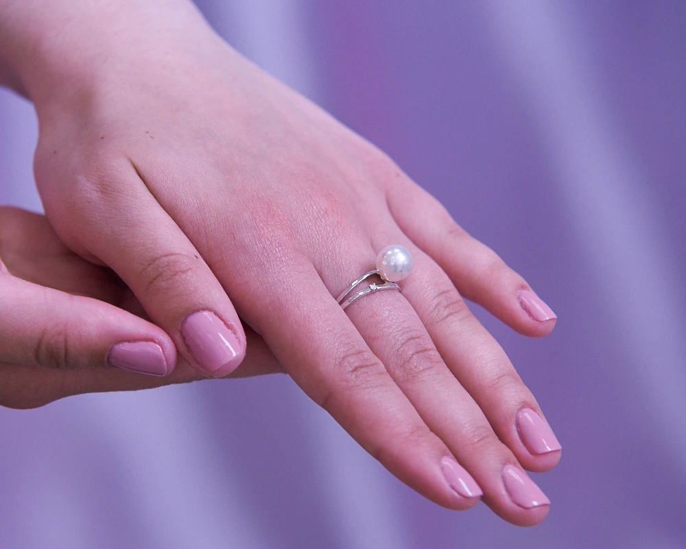 Кольцо из белого золота с белой морской жемчужиной Акойя 9-9,5 мм, (3027)