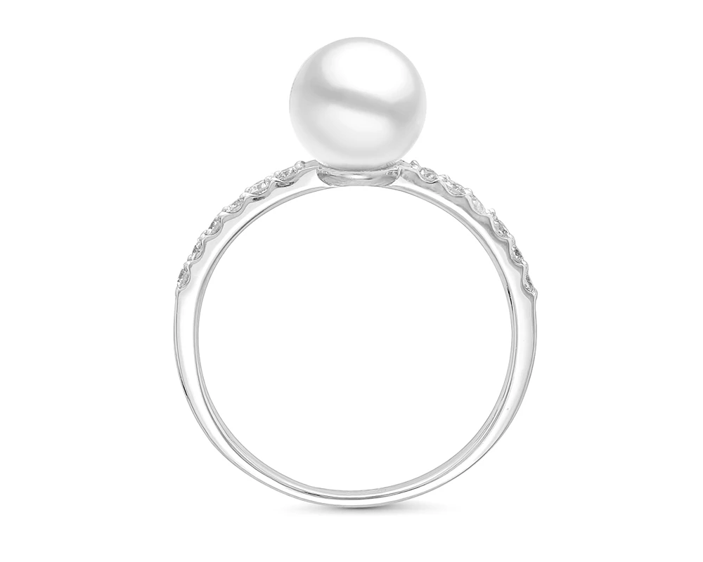 Кольцо из белого золота с белой морской жемчужиной Акойя 7,5-8 мм, (4127)