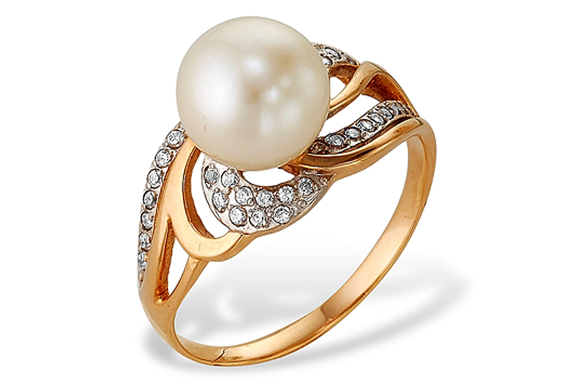 Кольцо из красного золота с белой речной жемчужиной 7,5-8 мм, (3829)
