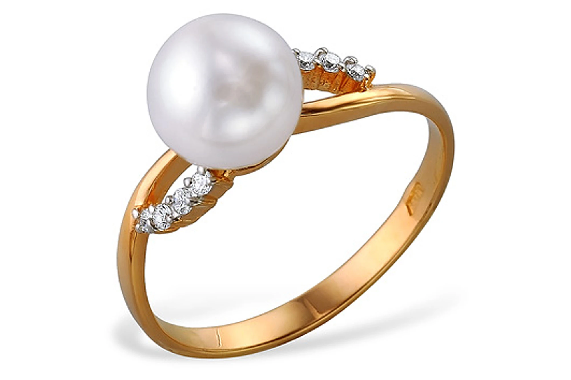 Кольцо из красного золота с белой речной жемчужиной 7,5-8 мм, (5960)