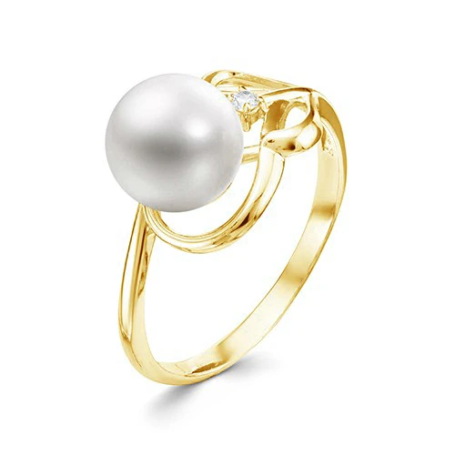 Кольцо из желтого золота с белой речной жемчужиной 7,5-8 мм, (5975)