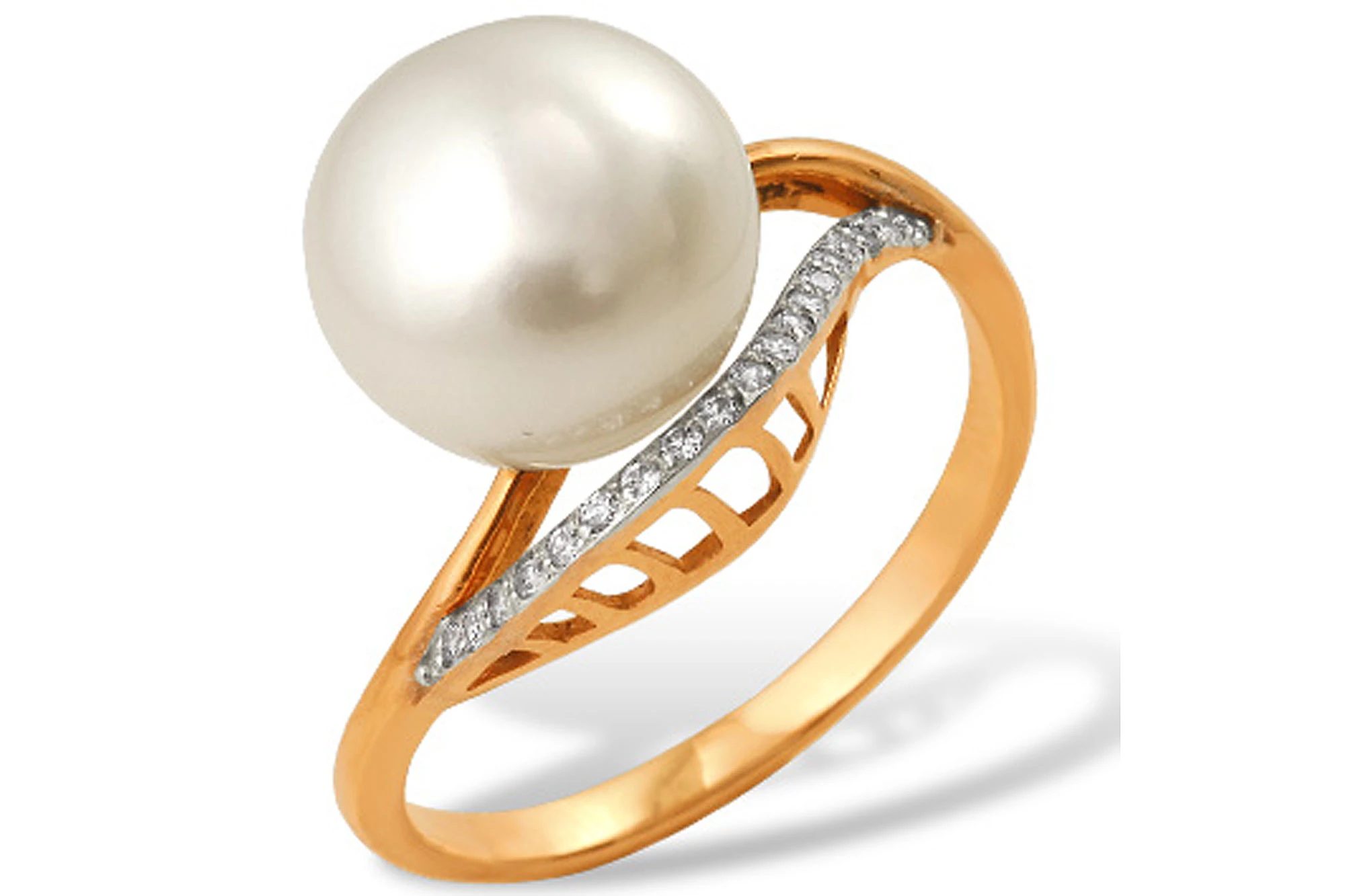 Кольцо из красного золота с белой речной жемчужиной 7,5-8 мм, (5978)