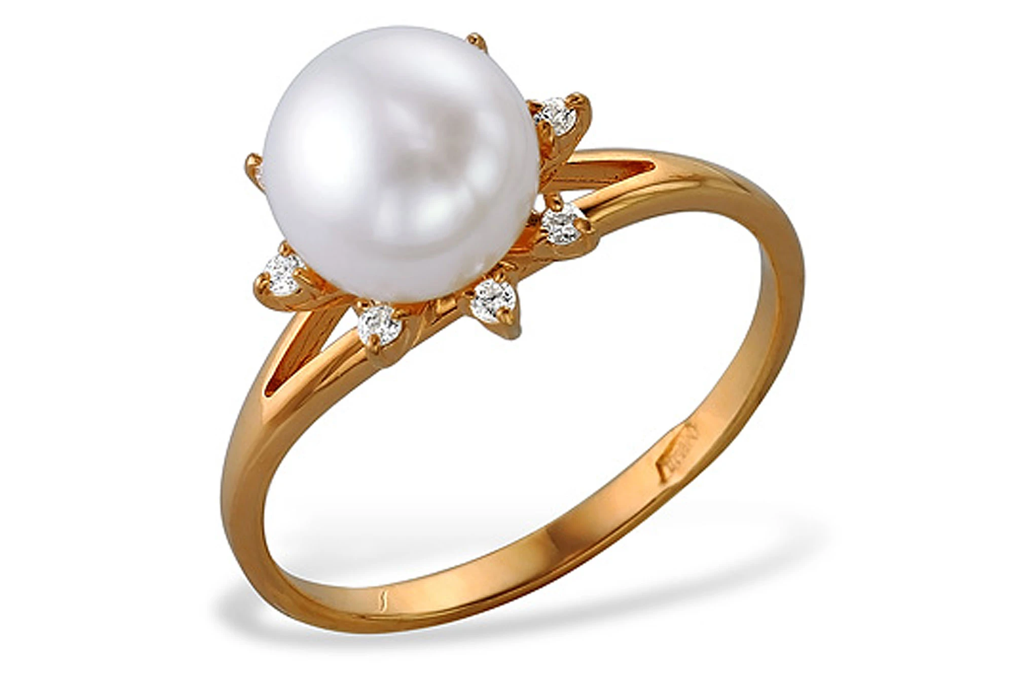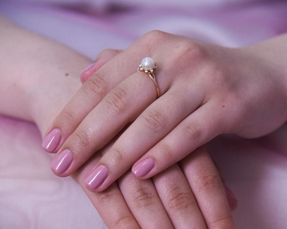 Кольцо из красного золота с белой речной жемчужиной 7-7,5 мм, (3827)