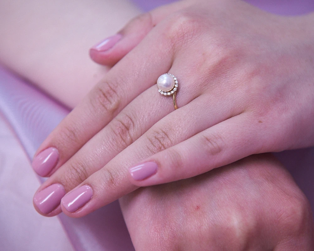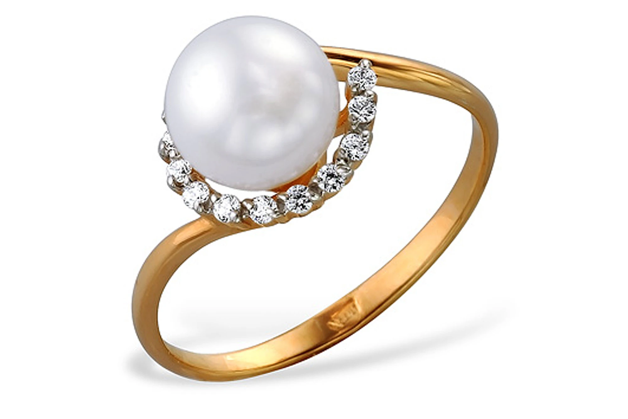 Кольцо из красного золота с белой речной жемчужиной 6,5-7 мм, (5962)