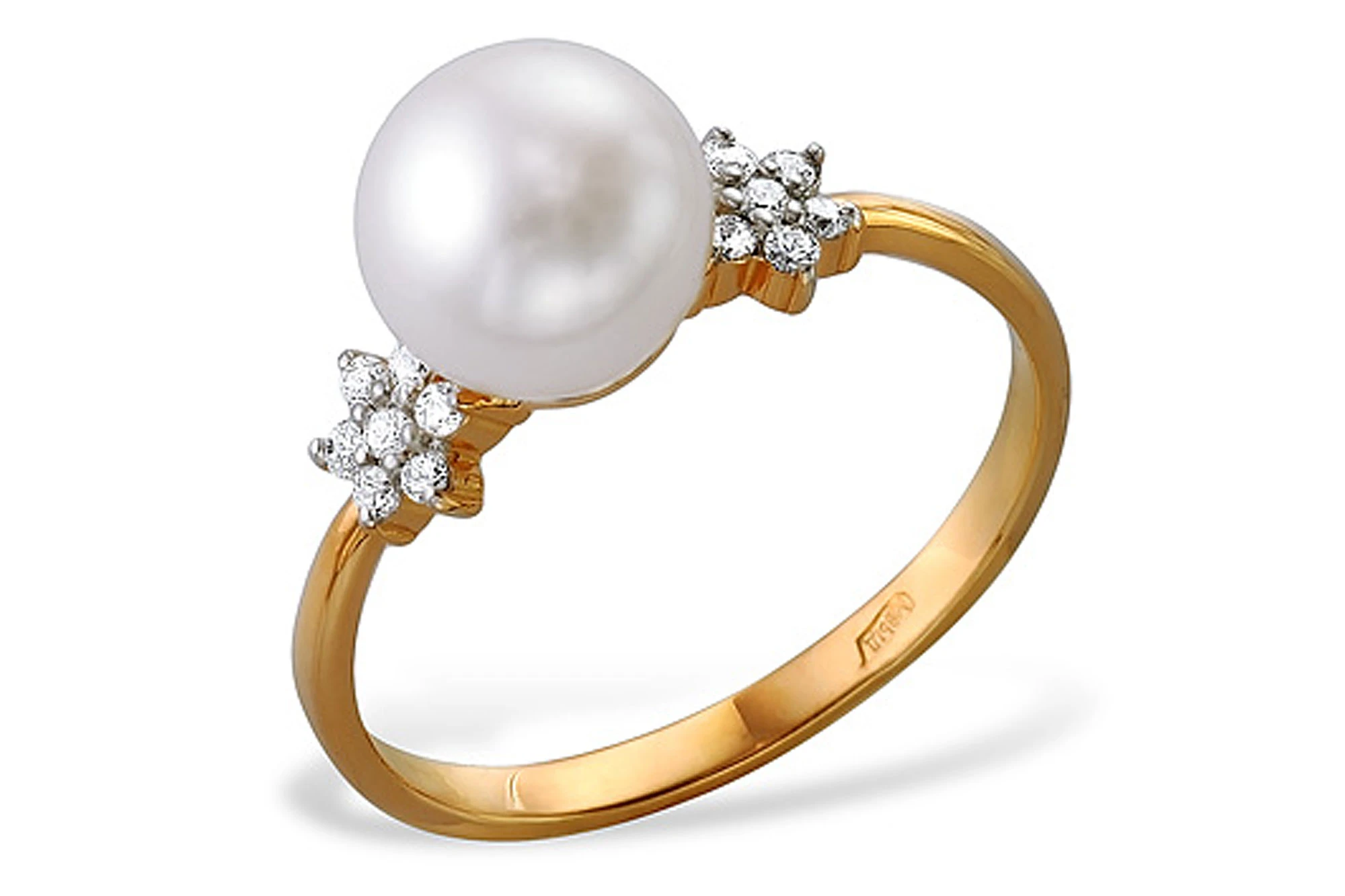 Кольцо выполнено из золота 585 пробы и украшено идеально круглой белой жемчужиной пресной воды. Качество жемчужины наивысшее для пресноводного жемчуга, блеск очень яркий, поверхность без дефектов. Производство — Россия.