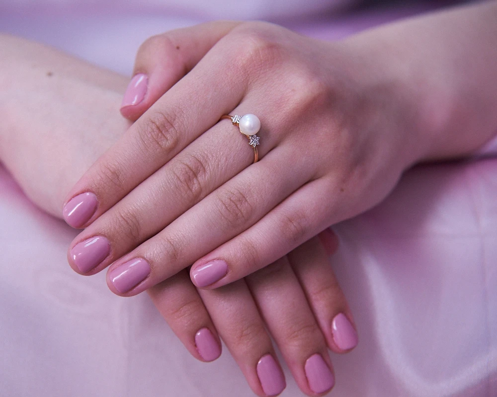 Кольцо из красного золота с белой речной жемчужиной 7-7,5 мм, (5963)