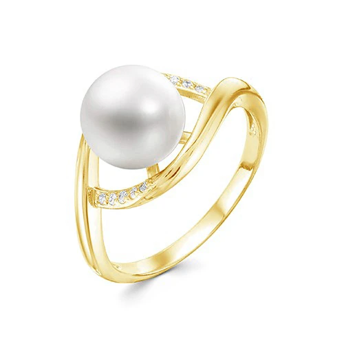 Кольцо из желтого золота с белой речной жемчужиной 9,5-10 мм, (5981)