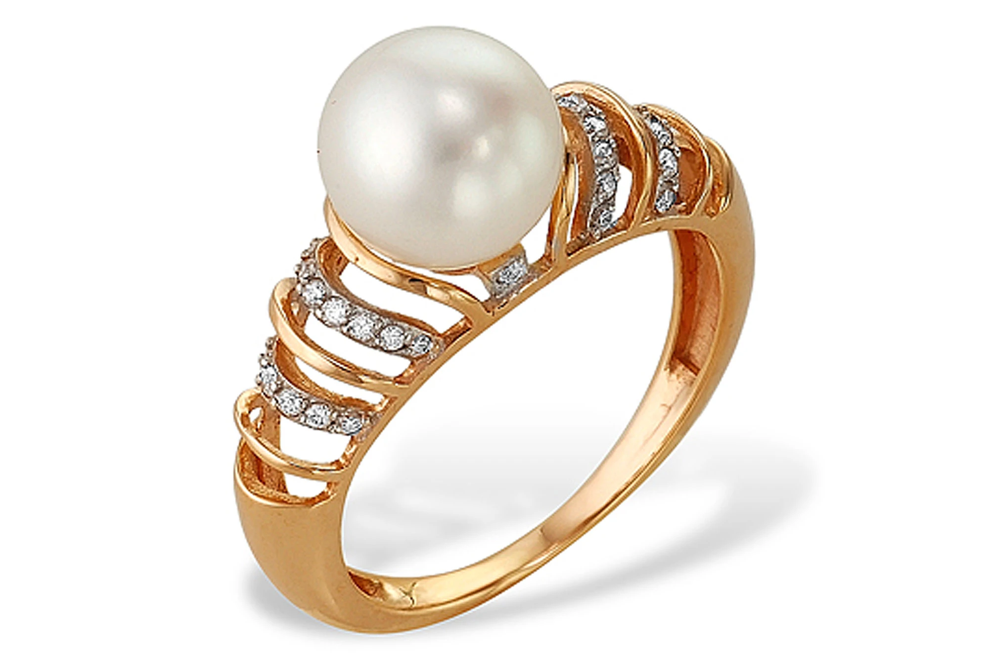 Кольцо из красного золота с белой речной жемчужиной 8,5-9 мм, (1197)