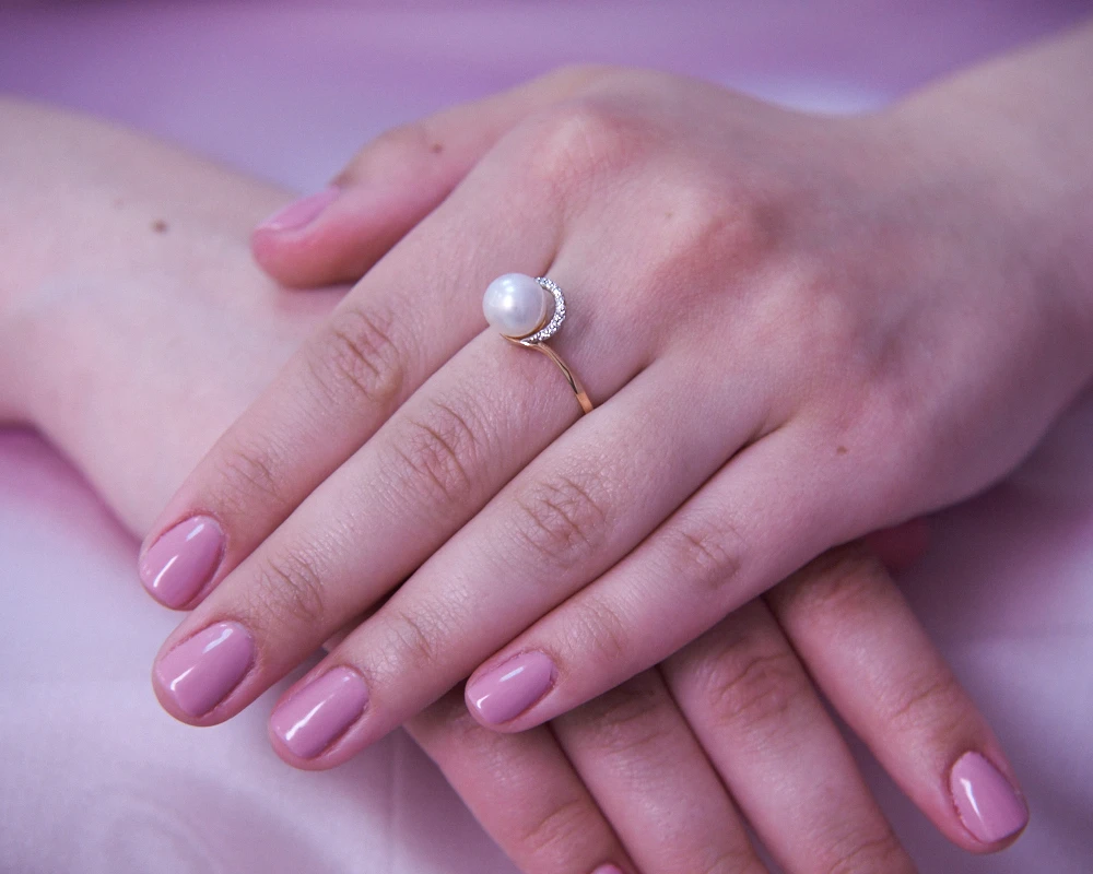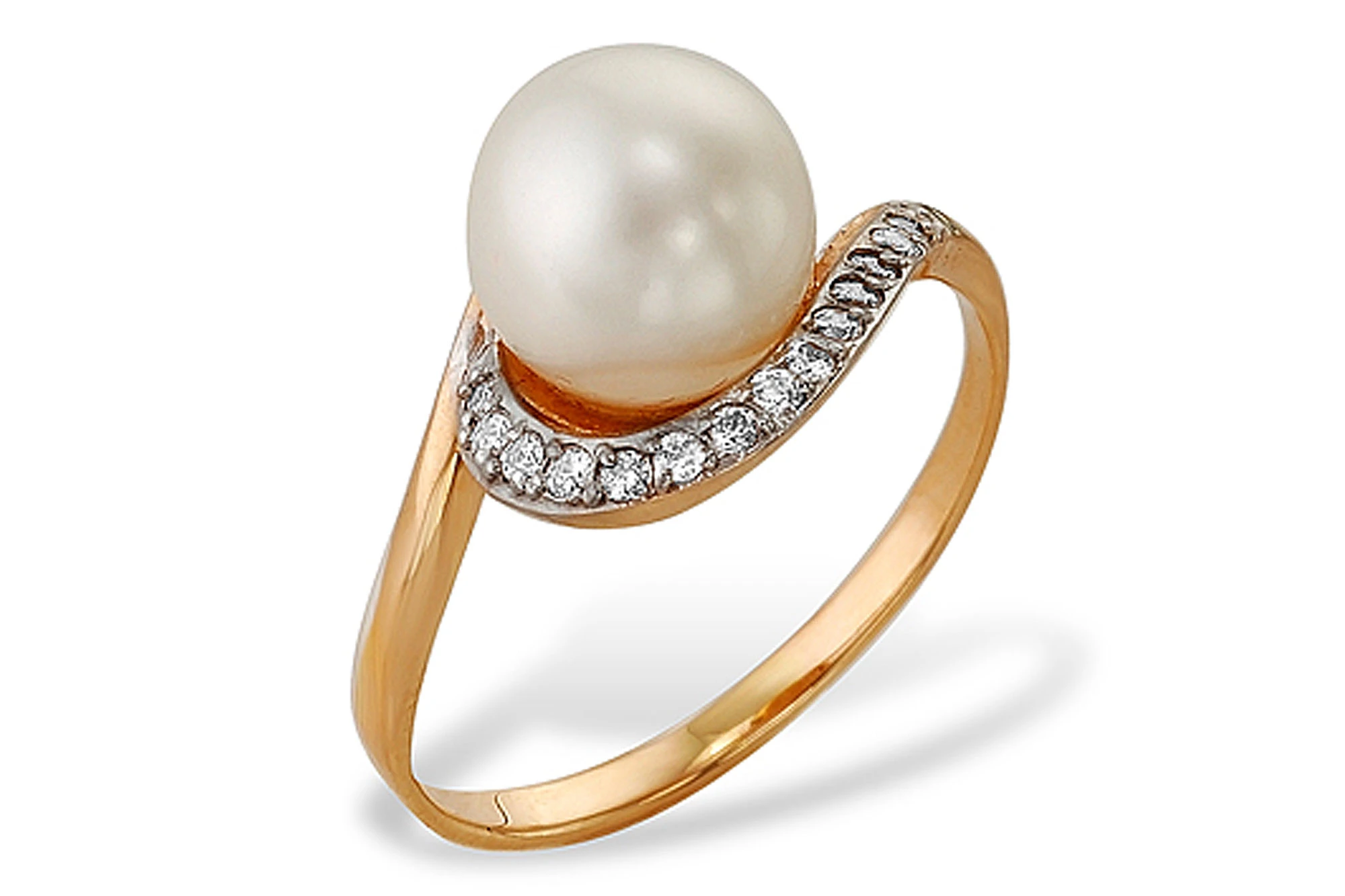 Кольцо из красного золота с белой речной жемчужиной 8,5-9 мм, (1220)