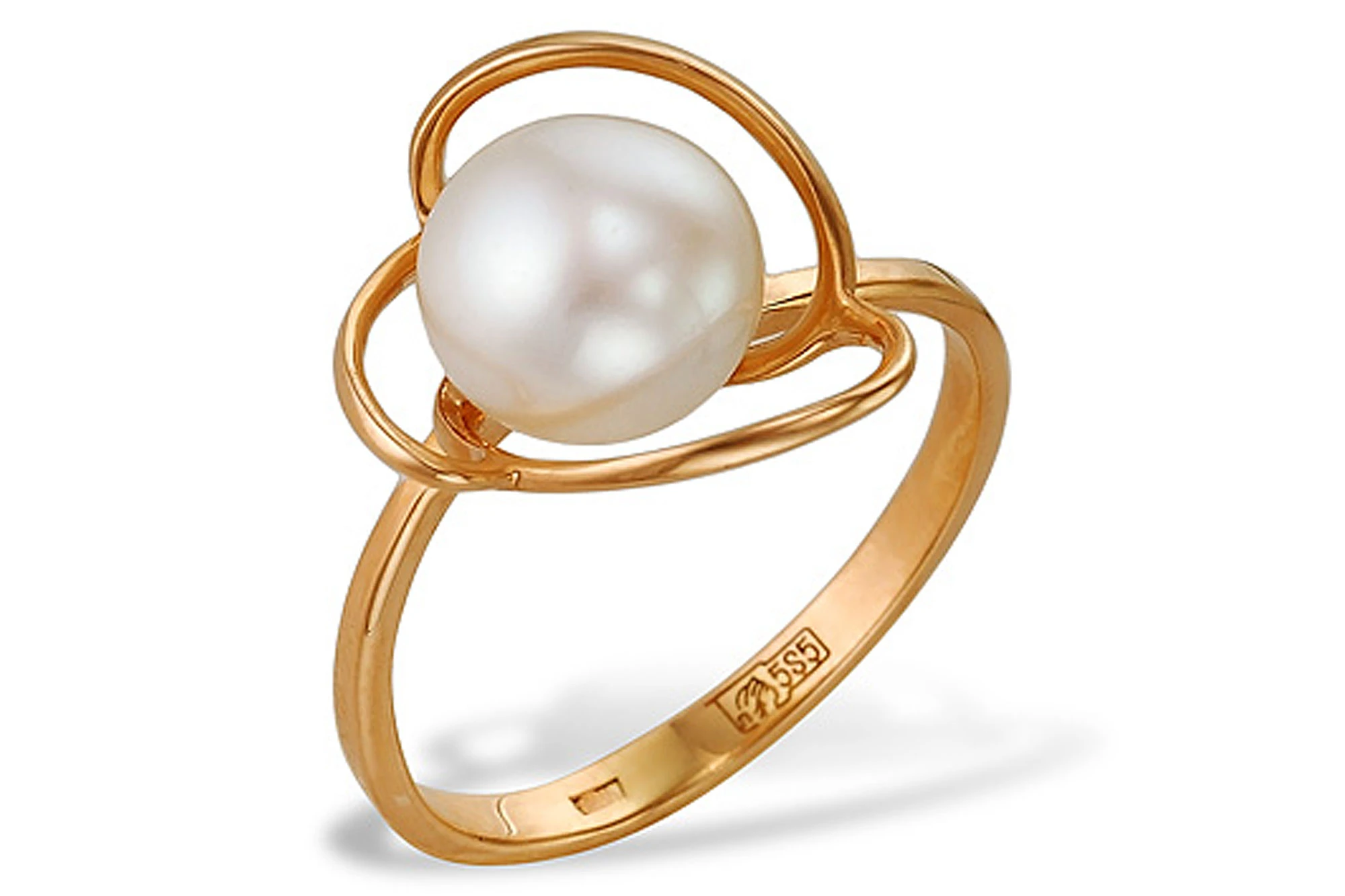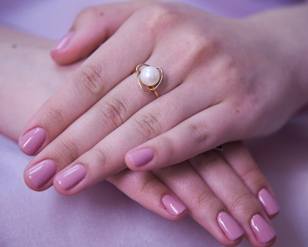 Кольцо из красного золота с белой речной жемчужиной 8,5-9 мм, (1967)