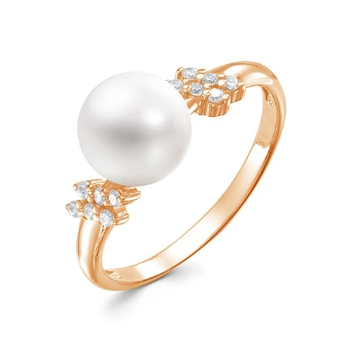 Кольцо из желтого золота с белой речной жемчужиной 7,5-8 мм, (3826)