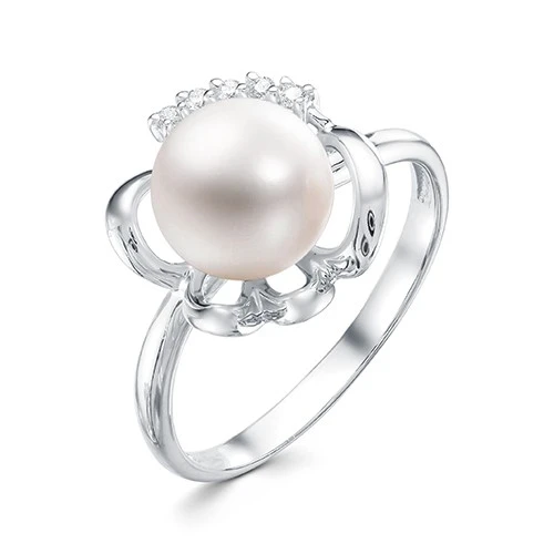 Кольцо из белого золота с белой речной жемчужиной 8,5-9 мм, (5980)