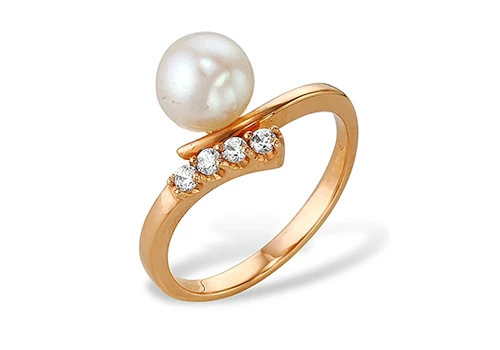 Кольцо из красного золота с белой речной жемчужиной 8-8,5 мм, (1212)