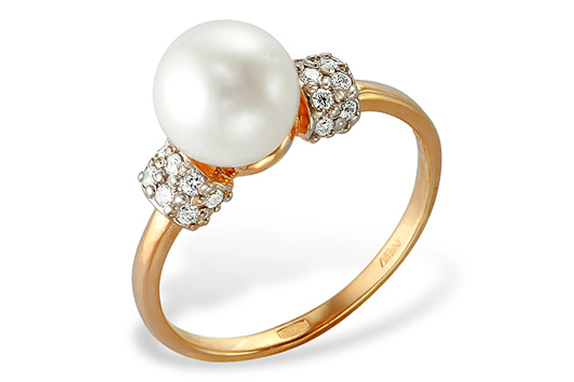 Кольцо из красного золота с белой речной жемчужиной 8-8,5 мм, (1437)