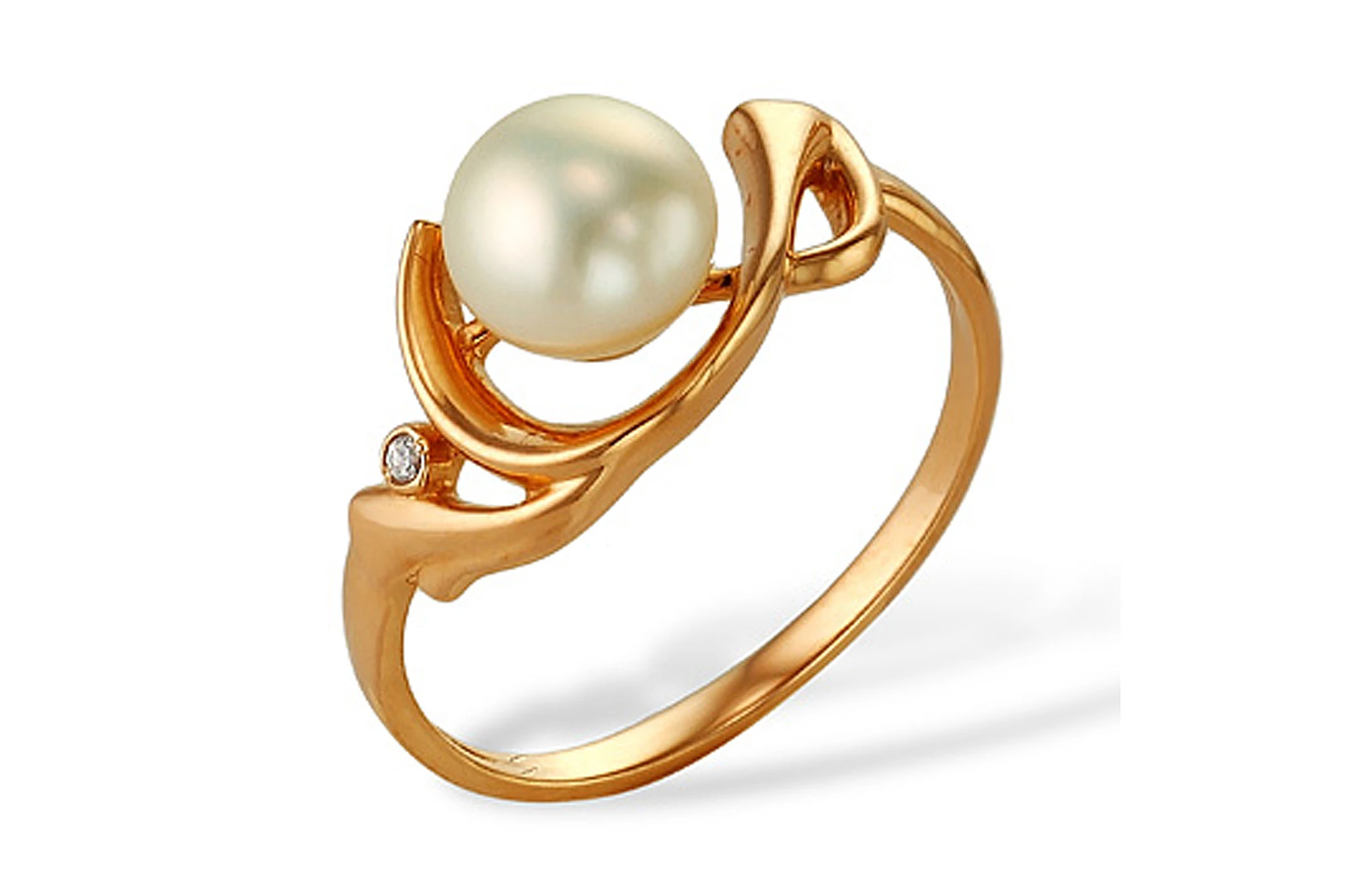 Кольцо из красного золота с белой речной жемчужиной 8-8,5 мм, (2222)