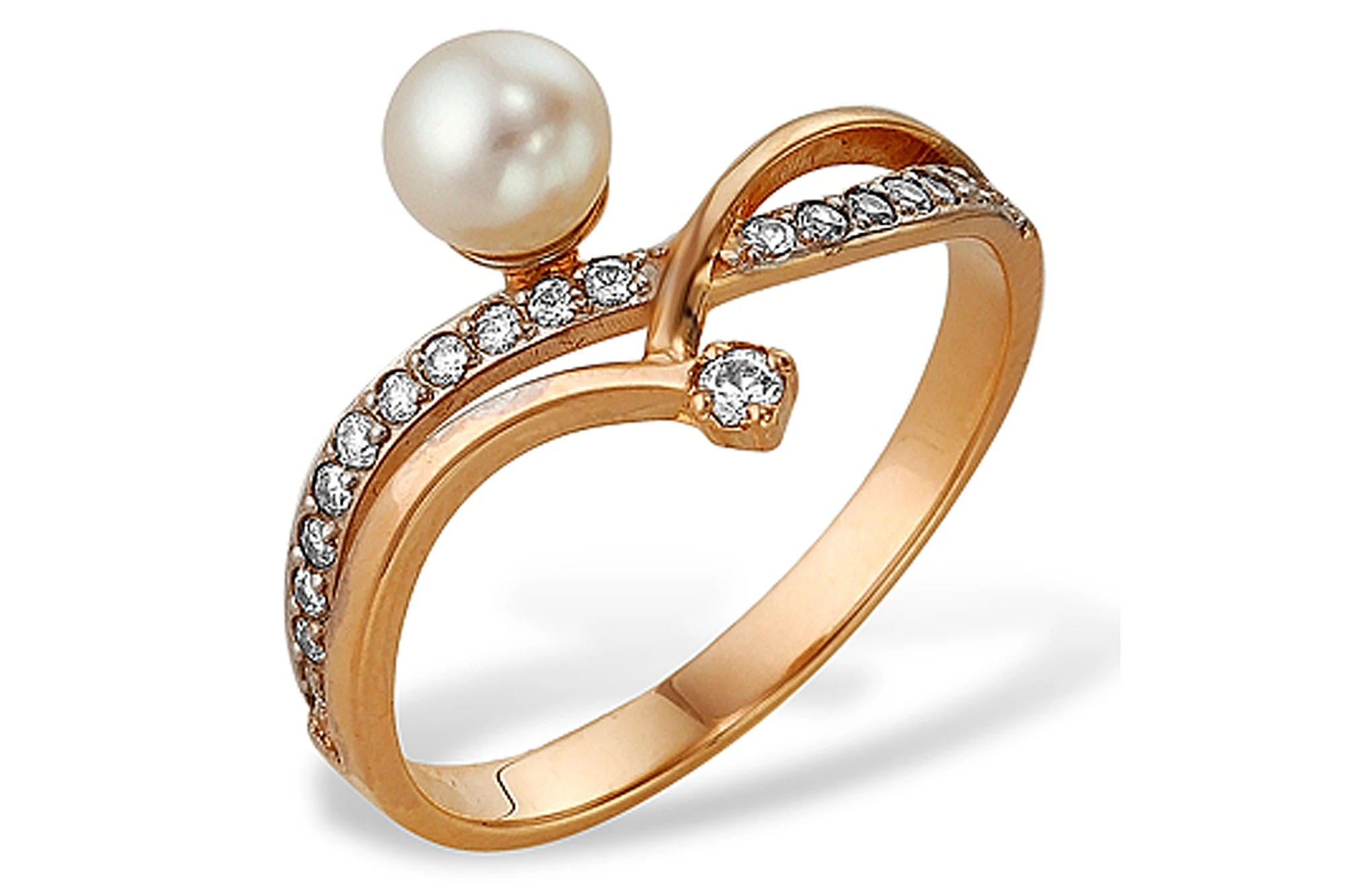 Кольцо из красного золота с белой речной жемчужиной 8-8,5 мм, (5979)