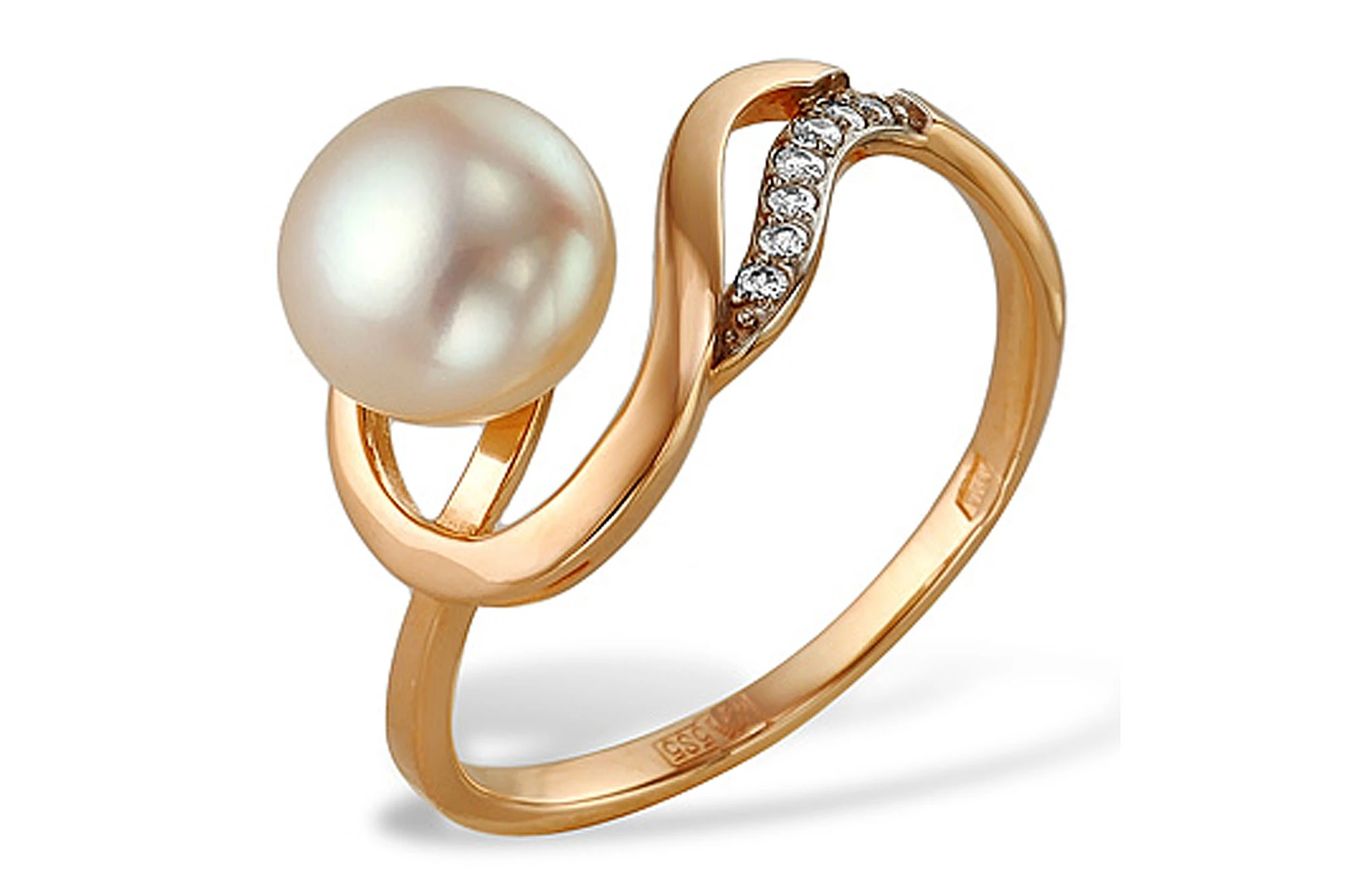 Кольцо из красного золота с белой речной жемчужиной 9-9,5 мм, (3824)