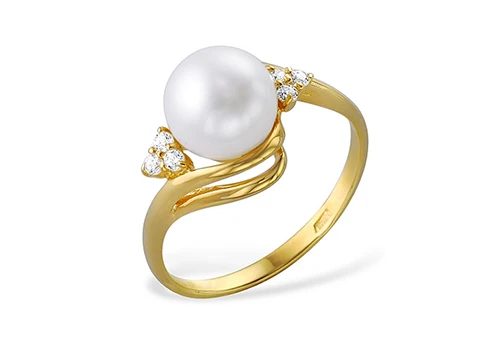 Кольцо из желтого золота с белой речной жемчужиной 7,5-8 мм, (2785)