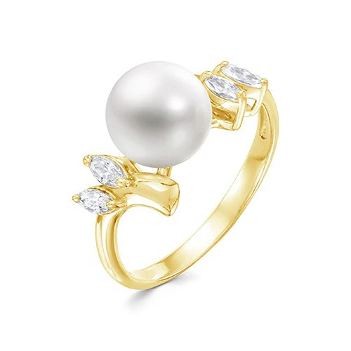 Кольцо из желтого золота с белой речной жемчужиной 8,5-9 мм, (6060)
