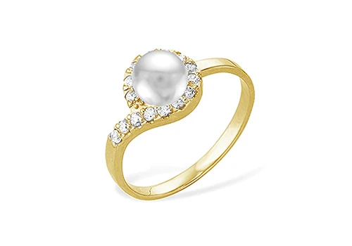 Кольцо из желтого золота с белой речной жемчужиной 7-7,5 мм, (1429)