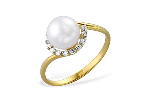 Кольцо из желтого золота с белой речной жемчужиной 7-7,5 мм, (1441)