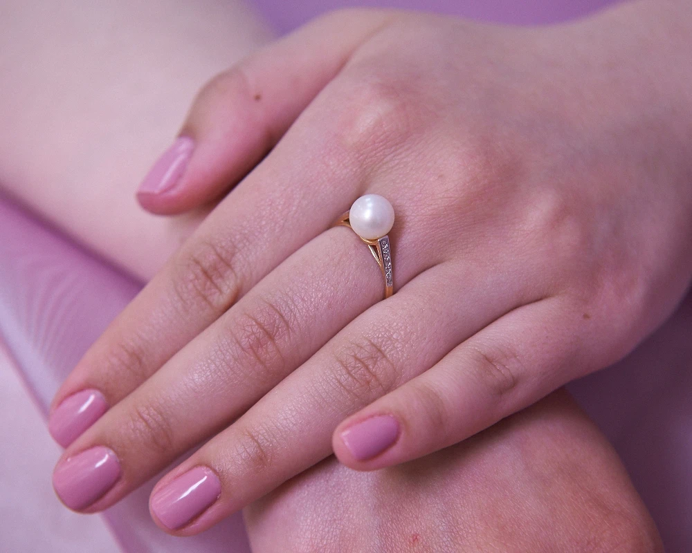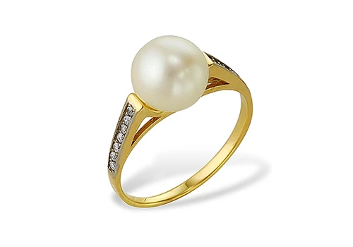 Кольцо из желтого золота с белой речной жемчужиной 8,5-9 мм, (1204)
