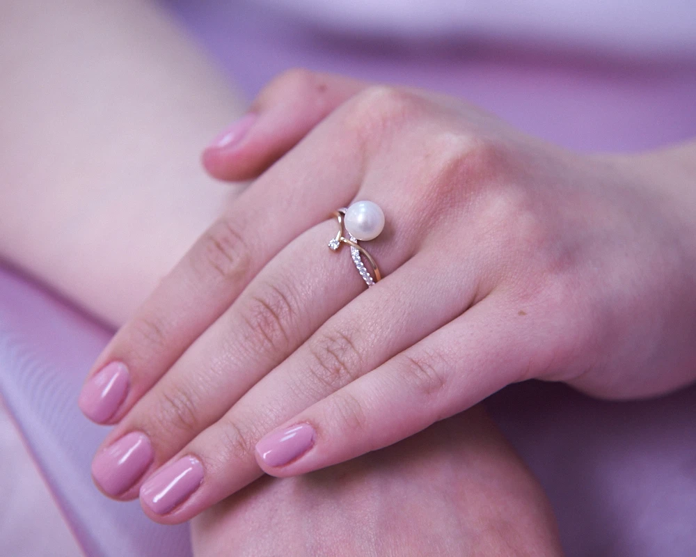 Кольцо выполнено из золота 585 пробы и украшено идеально круглой белой жемчужиной пресной воды. Качество жемчужины очень высокое, блеск яркий, поверхность без дефектов, форма жемчужины идеально сферическая. Производство — Россия.