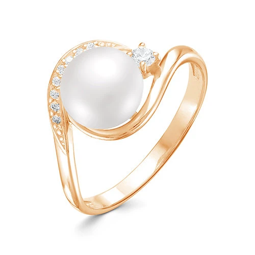 Кольцо из красного золота с белой речной жемчужиной 8,5-9 мм, (2224)