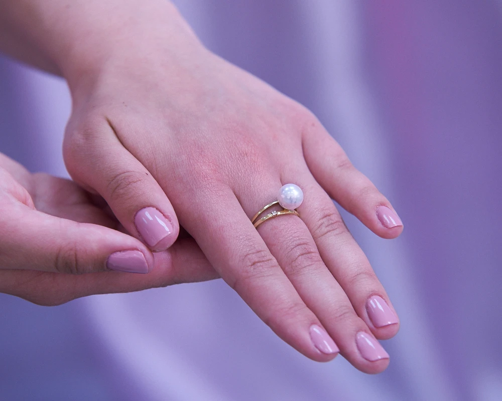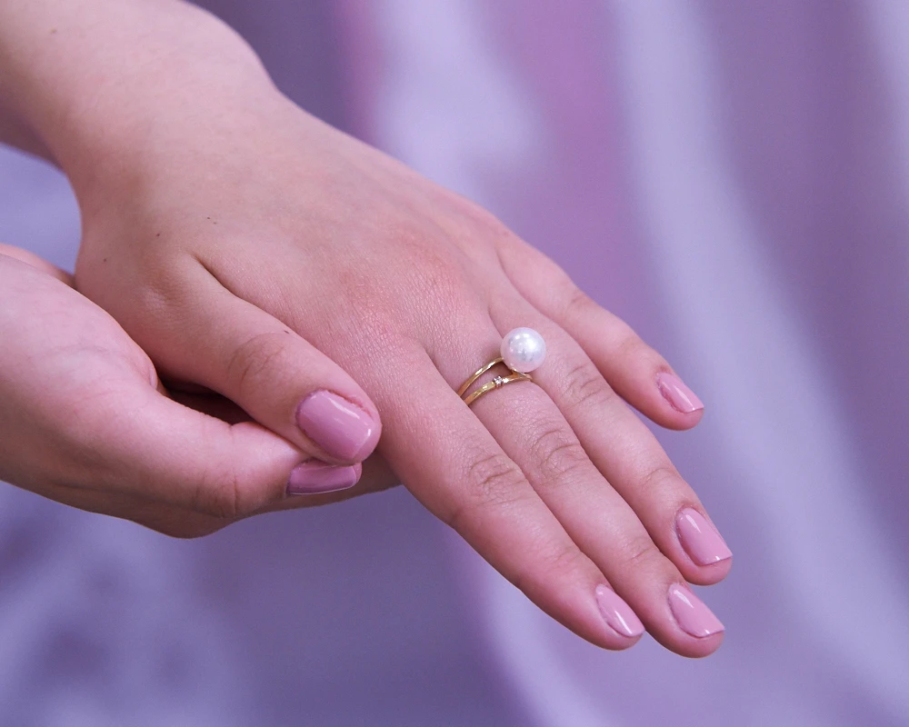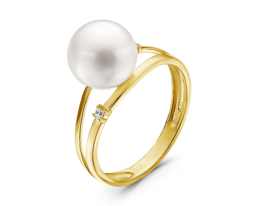Кольцо из желтого золота с белой морской жемчужиной Акойя 9-9,5 мм, (3028)