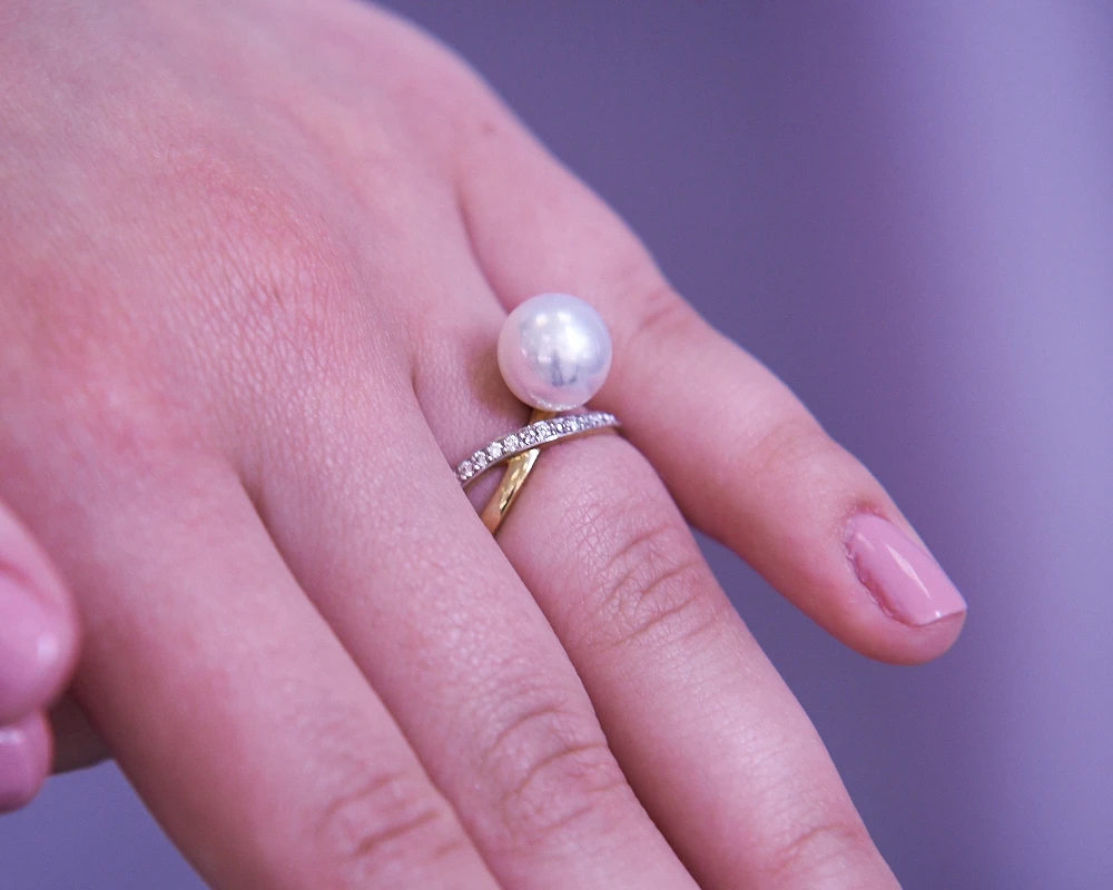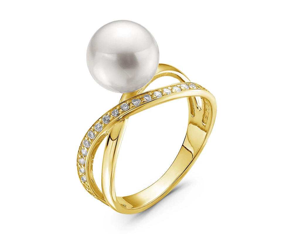Кольцо из желтого золота с белой морской жемчужиной Акойя 9-9,5 мм, (3025)