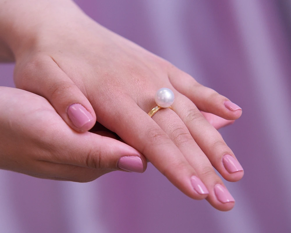 Кольцо из желтого золота с белой морской Австралийской жемчужиной 11,6-11,9 мм, (3013)