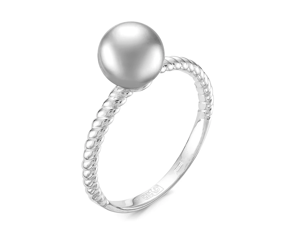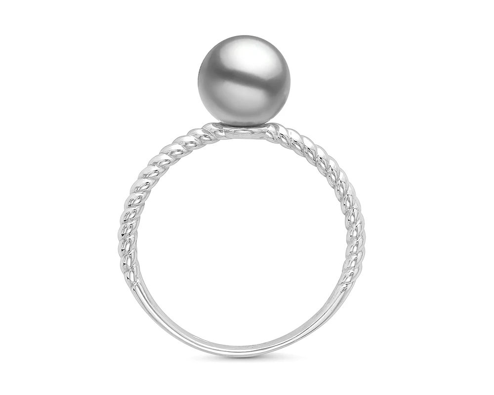 Кольцо из белого золота с серебристой морской жемчужиной Акойя 7,5-8 мм, (4129)