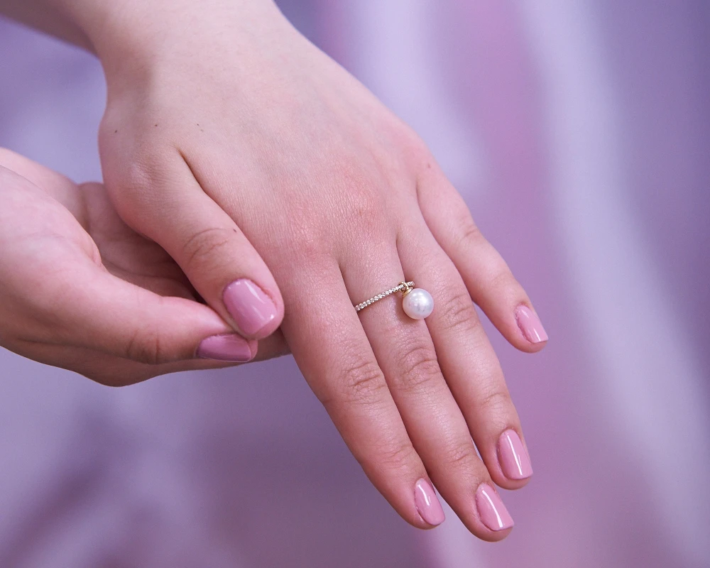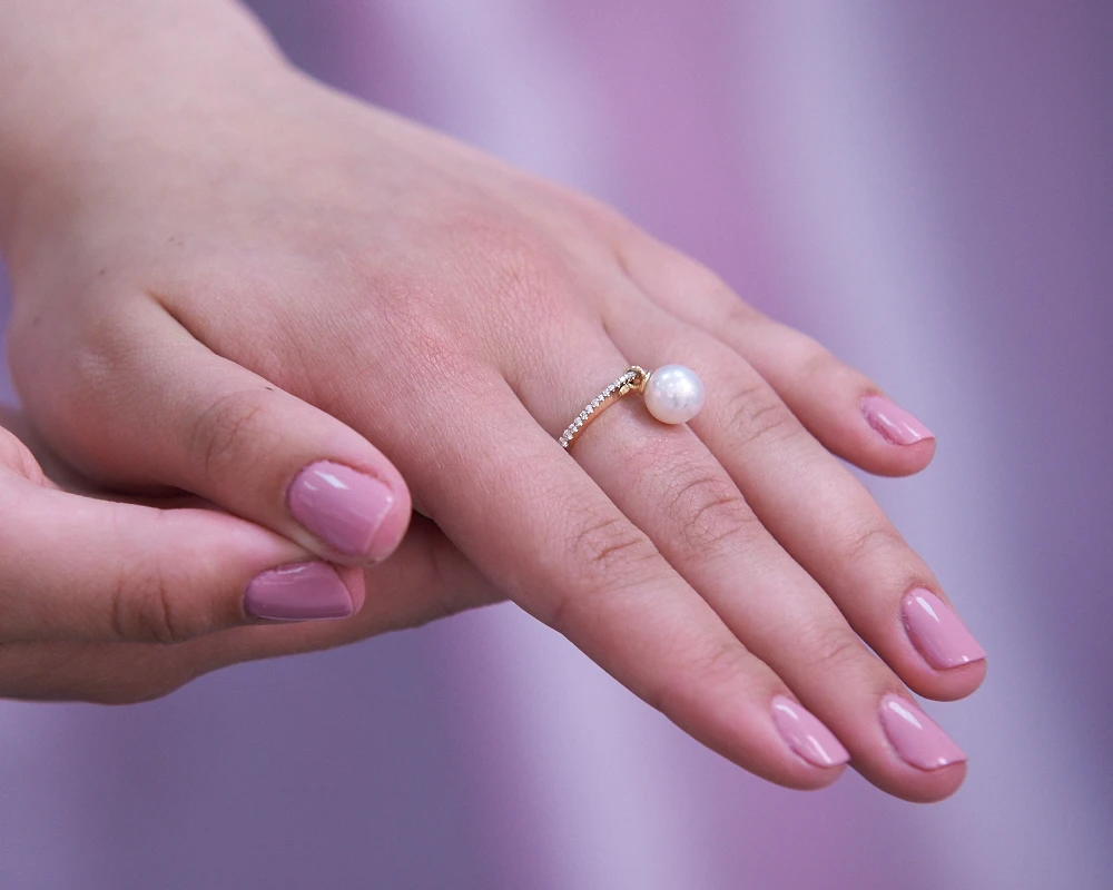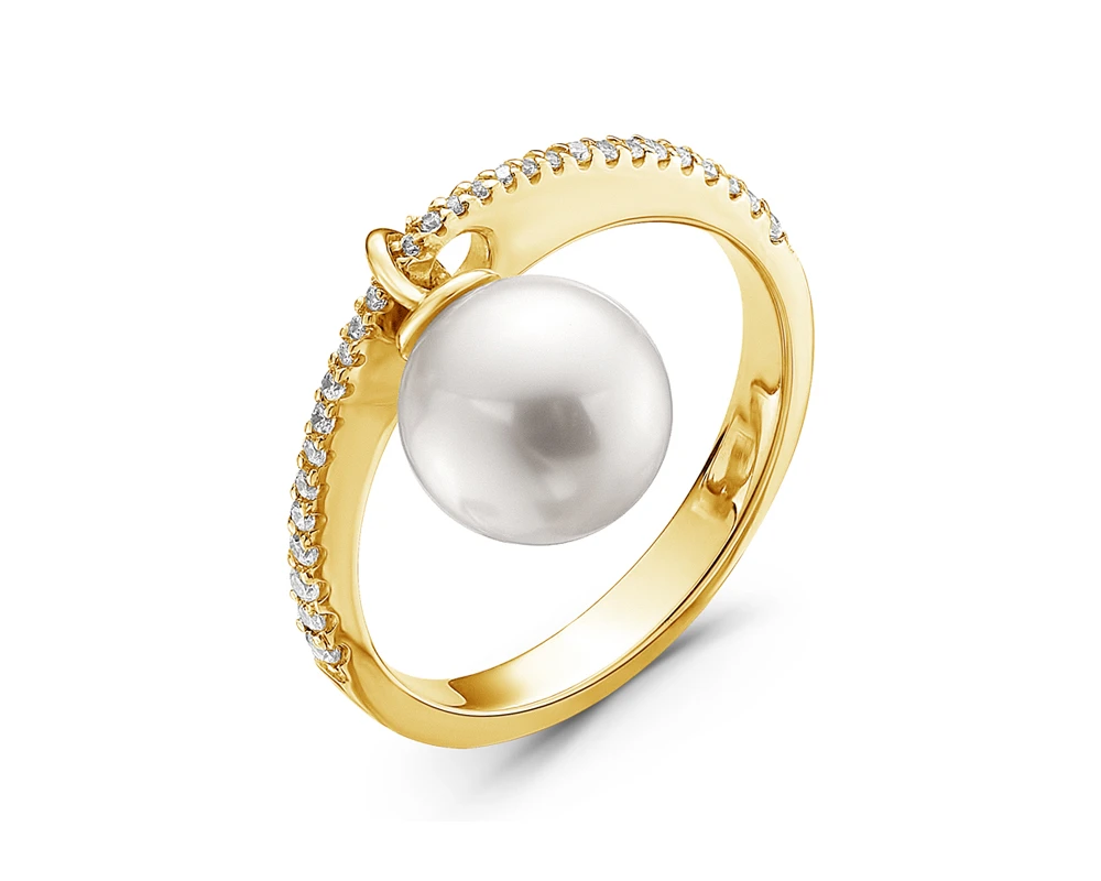 Кольцо из желтого золота с белой морской жемчужиной Акойя 8-8,5 мм, (3837)