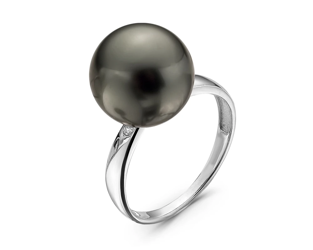 Кольцо из белого золота с черной морской Таитянской жемчужиной 11,6-11,9 мм, (3032)