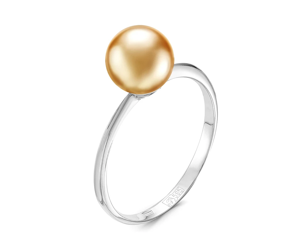 Кольцо "Дуэт" из белого золота c золотой и серебристой жемчужинами Акойя 7,5-8 мм, (4133)