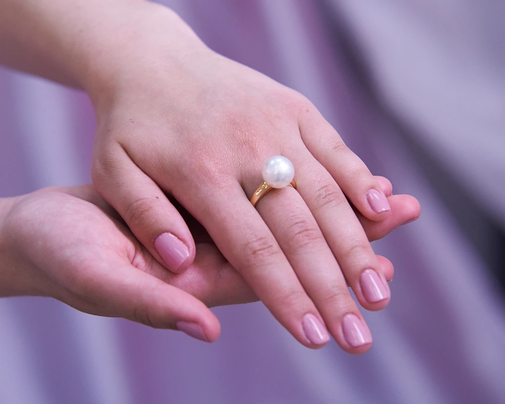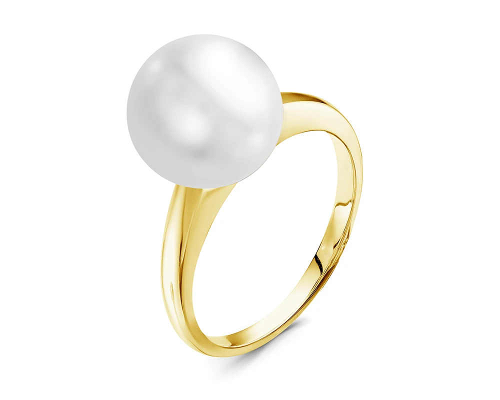 Кольцо из желтого золота с белой морской Австралийской жемчужиной 11-11,5 мм, (3012)