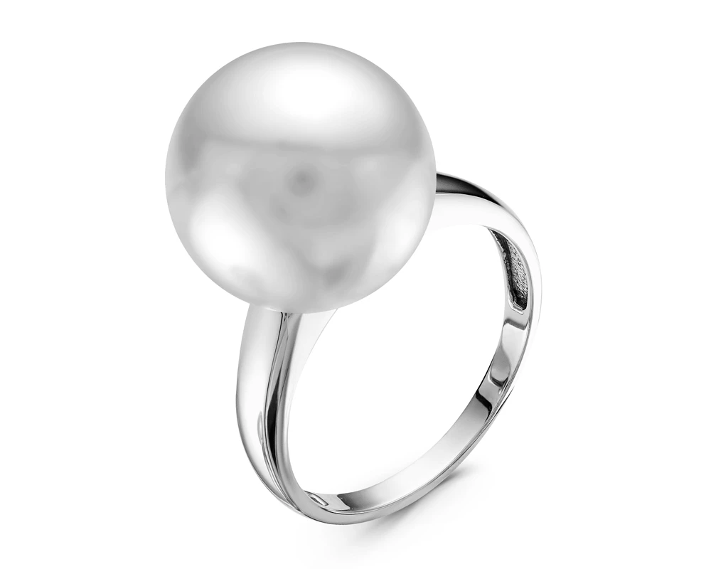 Кольцо из белого золота с белой морской Австралийской жемчужиной 13,6-13,9 мм, (3014)